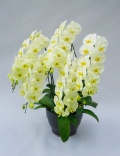 詳細はこちら通常の大輪系白、ピンクと違った色で又スプレーなどで色付けしていない自然の大輪系黄色胡蝶蘭です。「2015年世界洋ラン展」の胡蝶蘭部門で「奨励賞」を受賞した珍しい黄色の大輪胡蝶蘭です。黄色い花弁は10年の歳月をかけ完成した新しい品種で縁起の良い胡蝶蘭として人気です。お手持ち便(無料)で東京23区内配達に限定させていただきます。5本立ち55輪前後(蕾あり)高さ80㎝前後、幅65㎝前後。 グリーンアース5本立ちもございます。